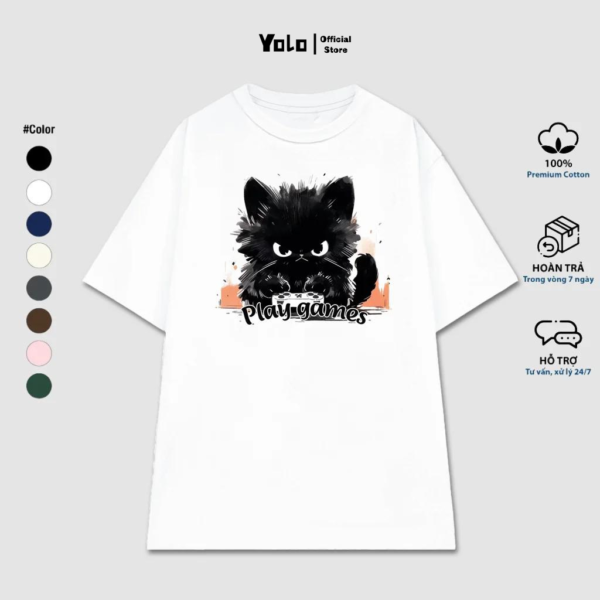 – Tên: Áo Thun Yolo Unisex Premium Cotton Mèo Chơi Game Siêu Cool