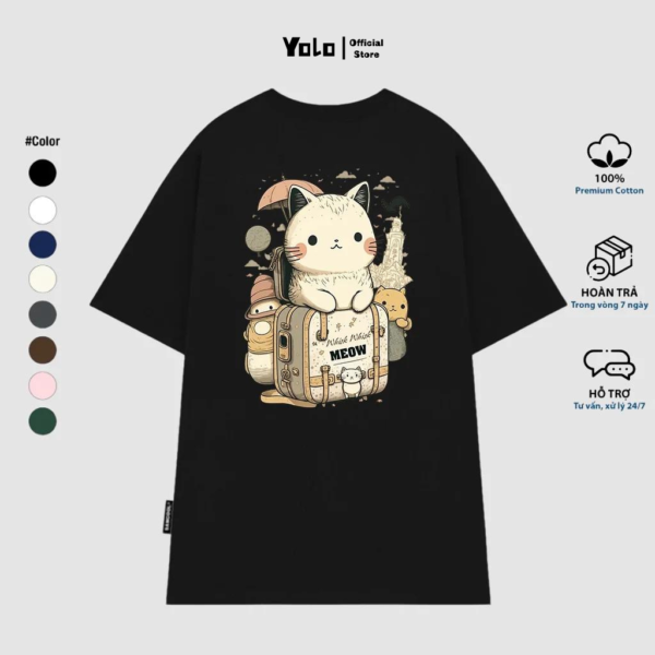 Áo Thun Local Brand Yolo Unisex Premium Cotton Mèo Du Lịch Dễ Thương